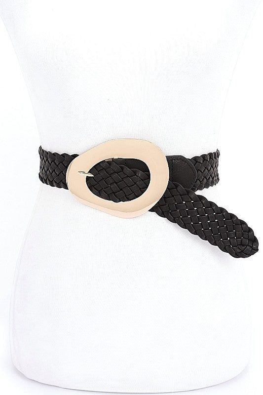 Braided Fashion Belt Shimmering Buckle Polyurethane