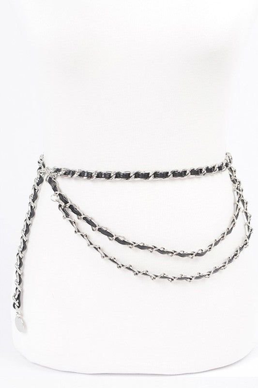 Chain Belt Layered PU Leather Everyday Wear Minimalist