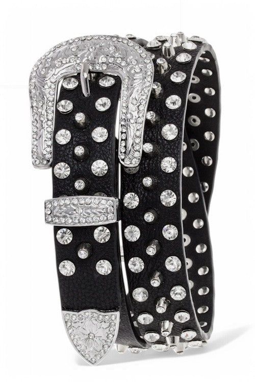 Crystal Studded Belt Polyurethane Modern Style Fashion