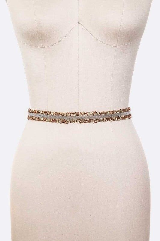 Regular price $29.99Sale price $29.99 Regular priceUnit price / perIntroducing a glitter rhinestone skinny sash belt with an adjustable metallic finish. This belt adds subtle sparkle to neutral accessories while embracing a minimalist, modern vibe....
