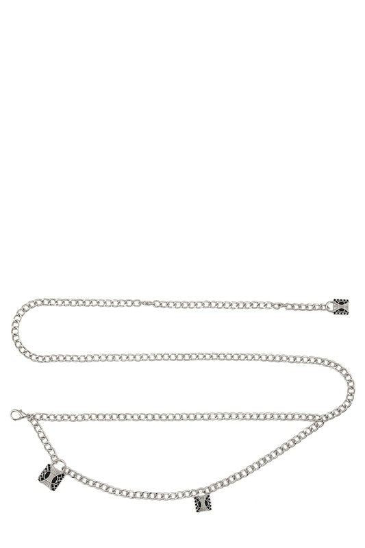 Textured Square Disk Iconic Chain Belt Iron Minimalist