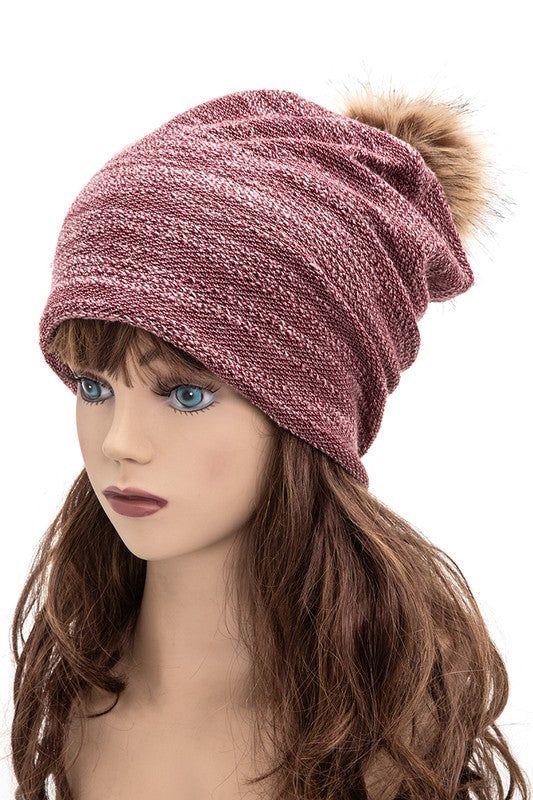 Beanie Slouchy Faux Fur Pom Cotton Winter Cozy Everyday