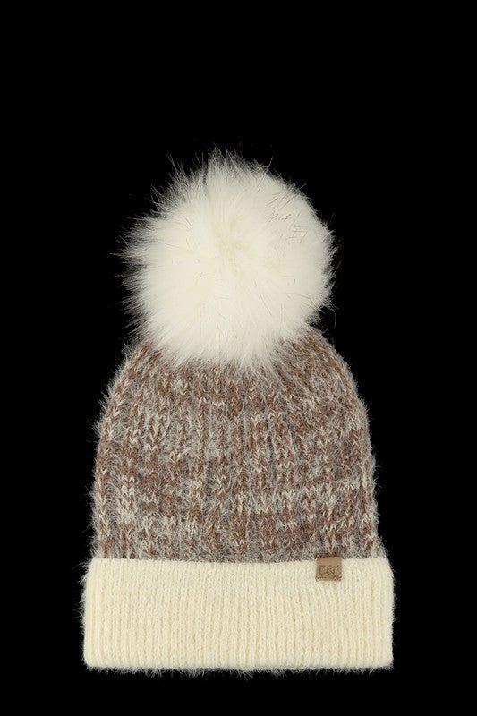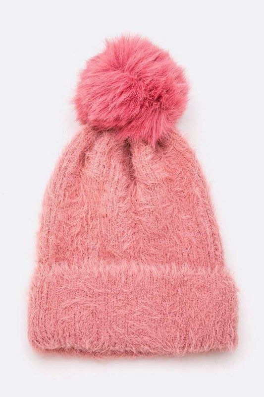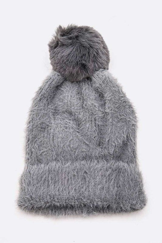 Yarn Beanie Super Soft Cozy Faux Fur Pom Knit Hat Warm