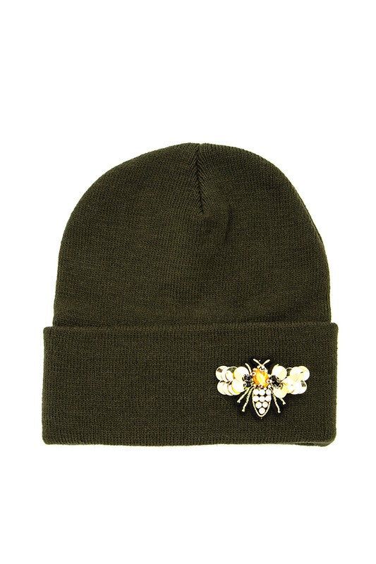 Winter Knit Beanie Acrylic Embellished With Golden Bee